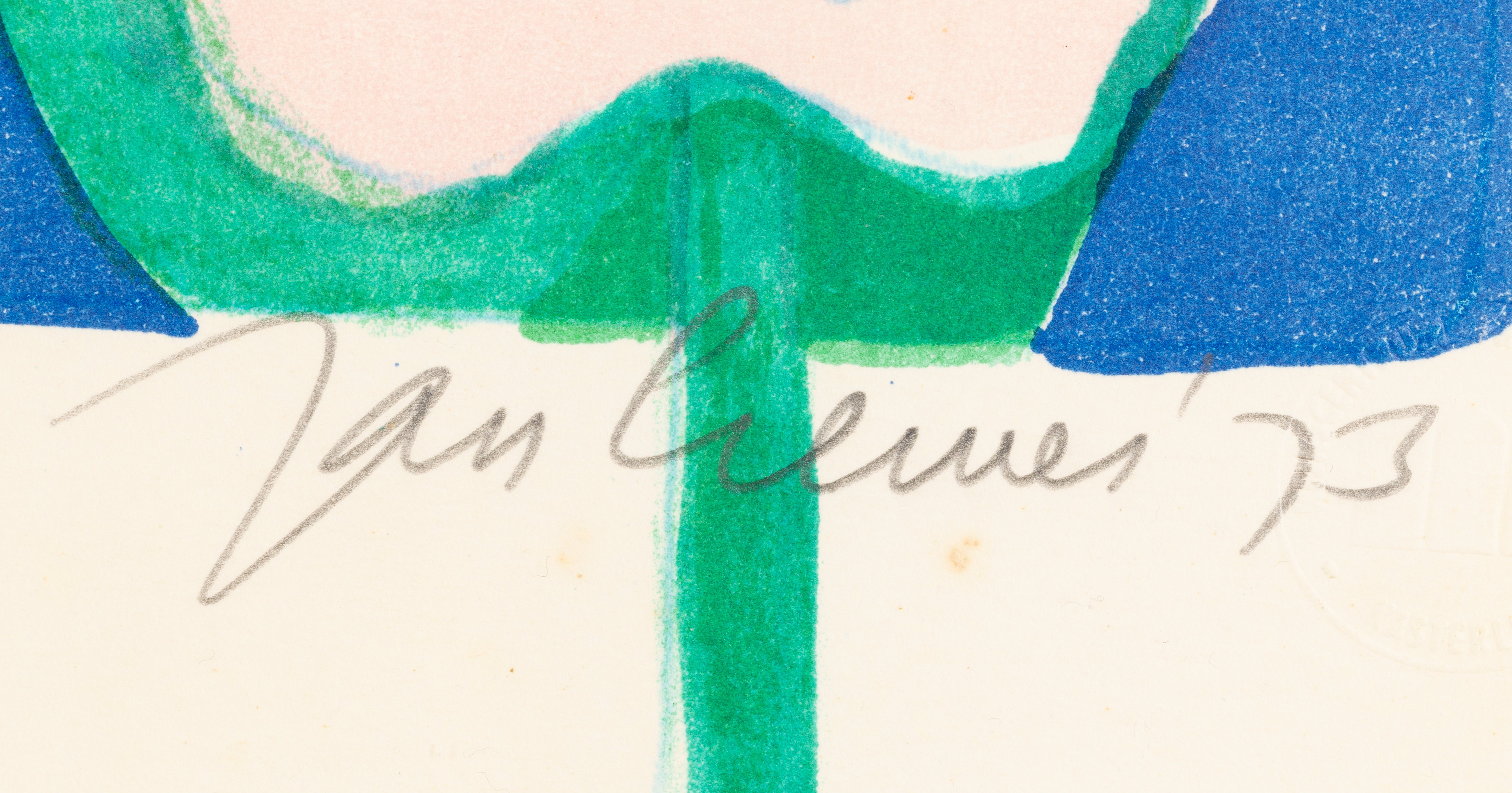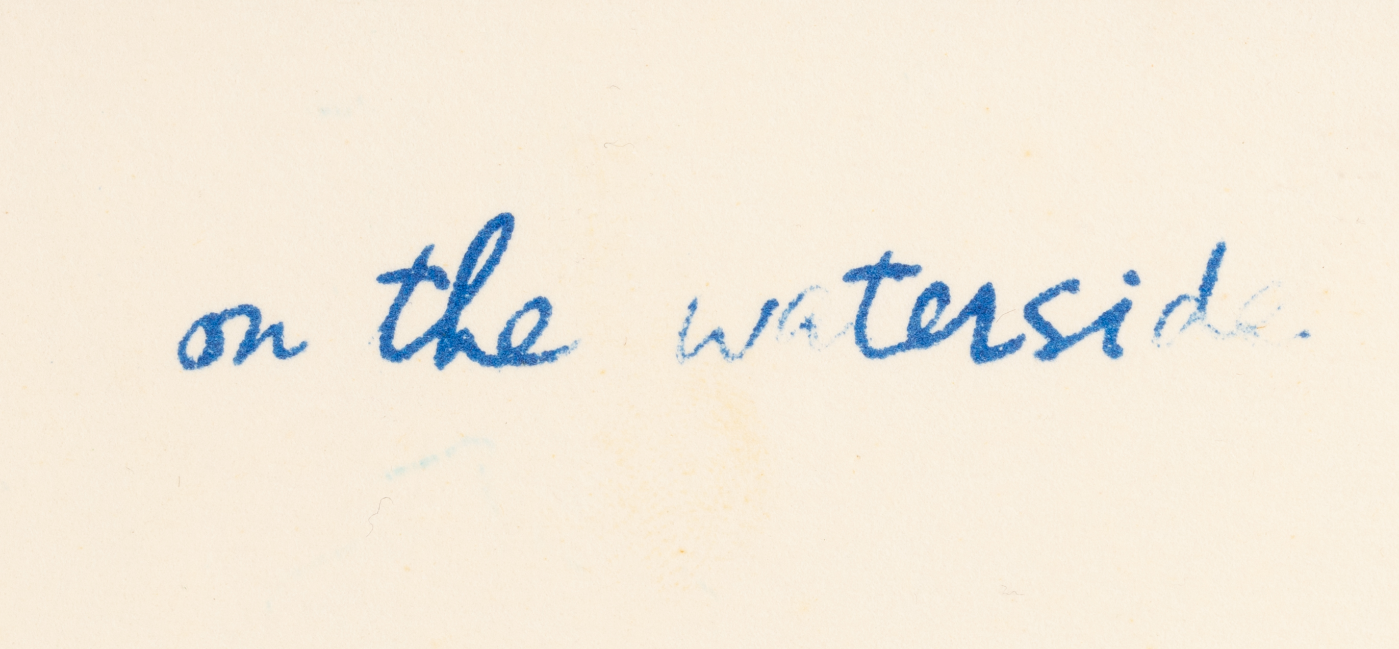 Signed and dated lower right “Jan Cremer ’73”; titled “on the waterside.” in the center; numbered “43/80” lower left.