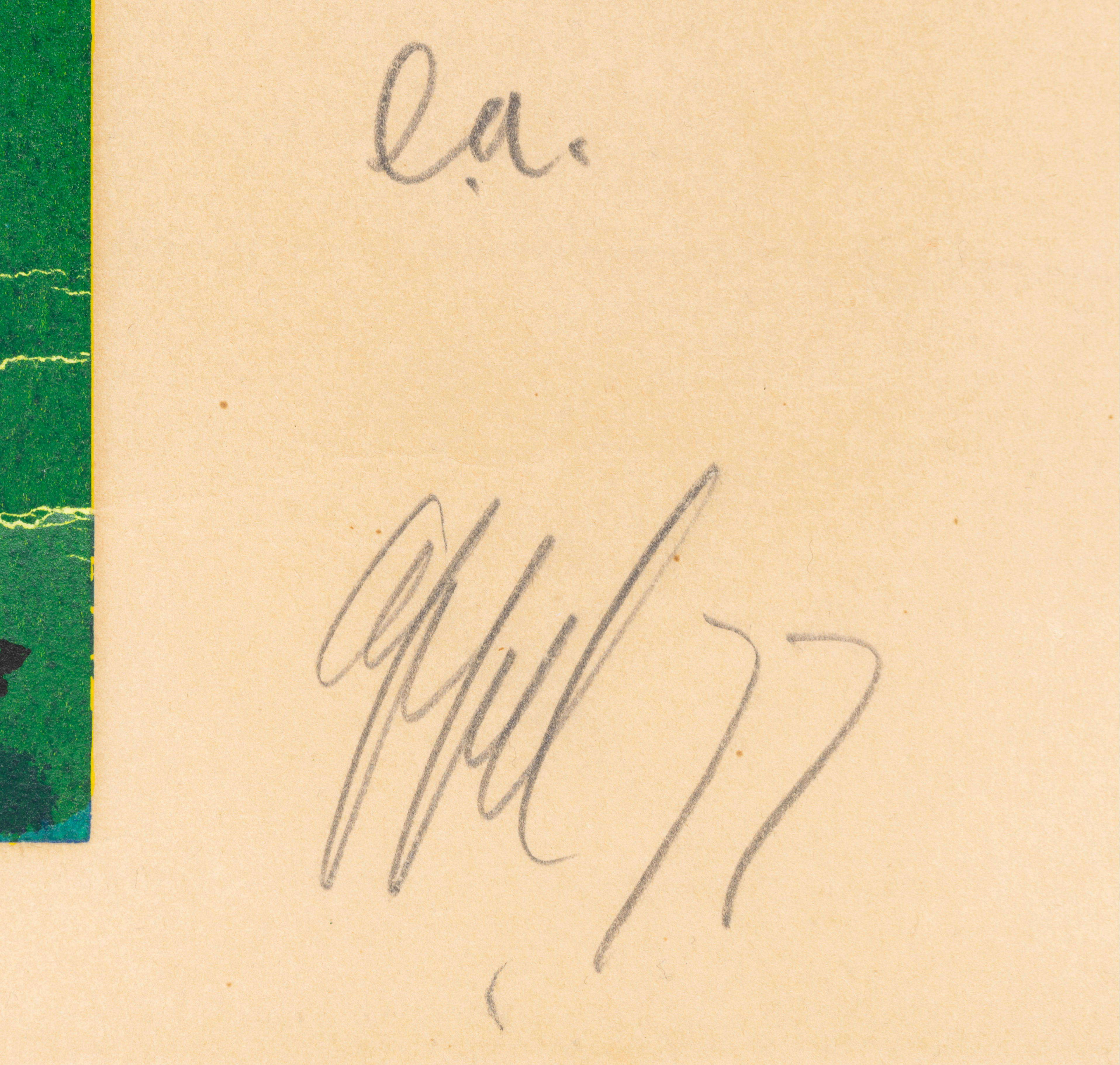 Signed and dated lower right “Appel 77” (pencil); inscribed “e.a.” and dedicated to Jules Farber by the artist in the lower margin.