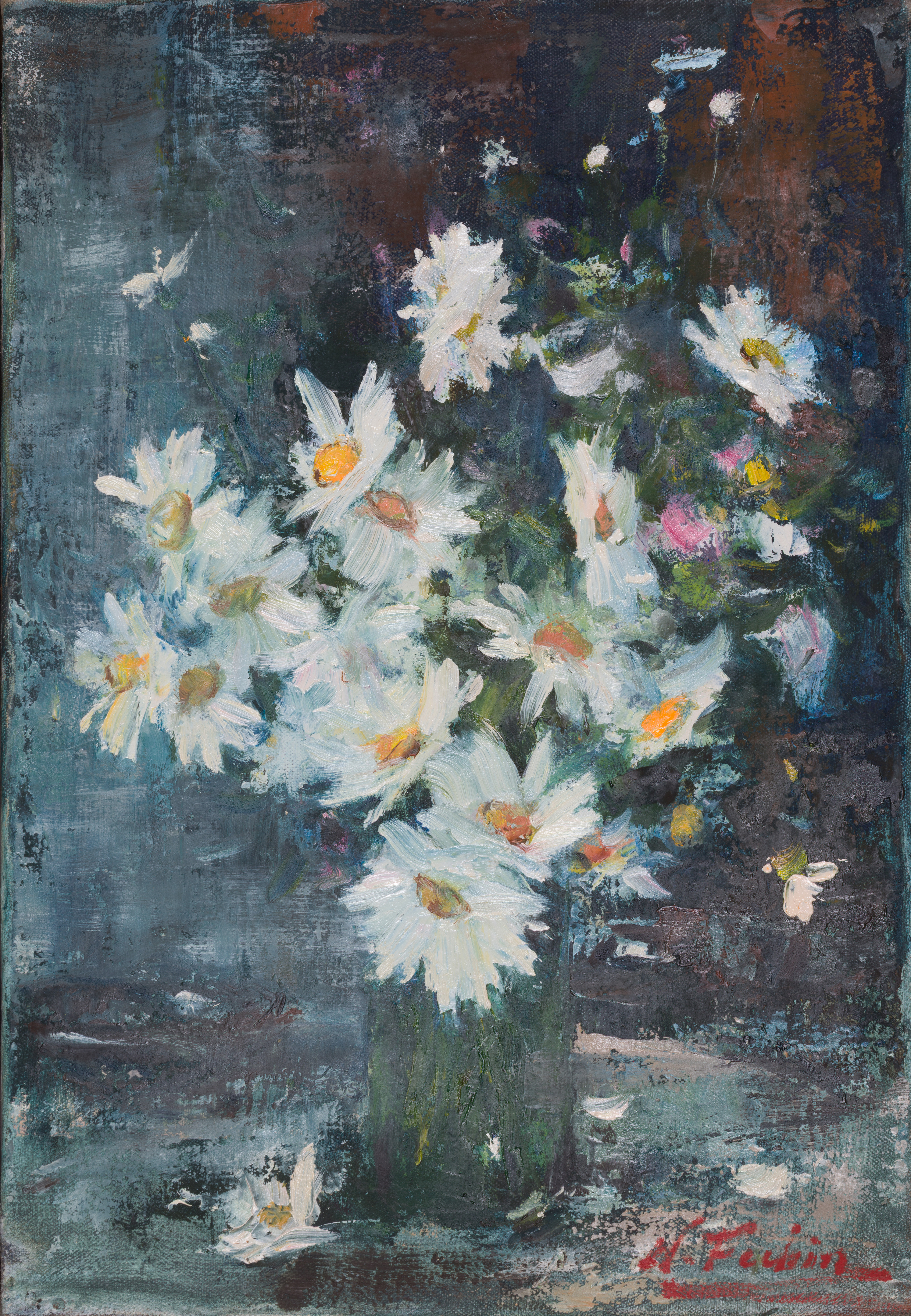 In 1923, Fechin immigrated to the United States, settling in Taos, New Mexico, where he found inspiration in the landscapes and indigenous cultures of the American Southwest. His paintings from this period, such as Taos Girl and Indian Head, showcased his remarkable ability to capture both the physical likeness and inner essence of his subjects. His technique, characterized by thick, impasto strokes and a fusion of realism and abstraction, became a defining element of his artistic legacy.