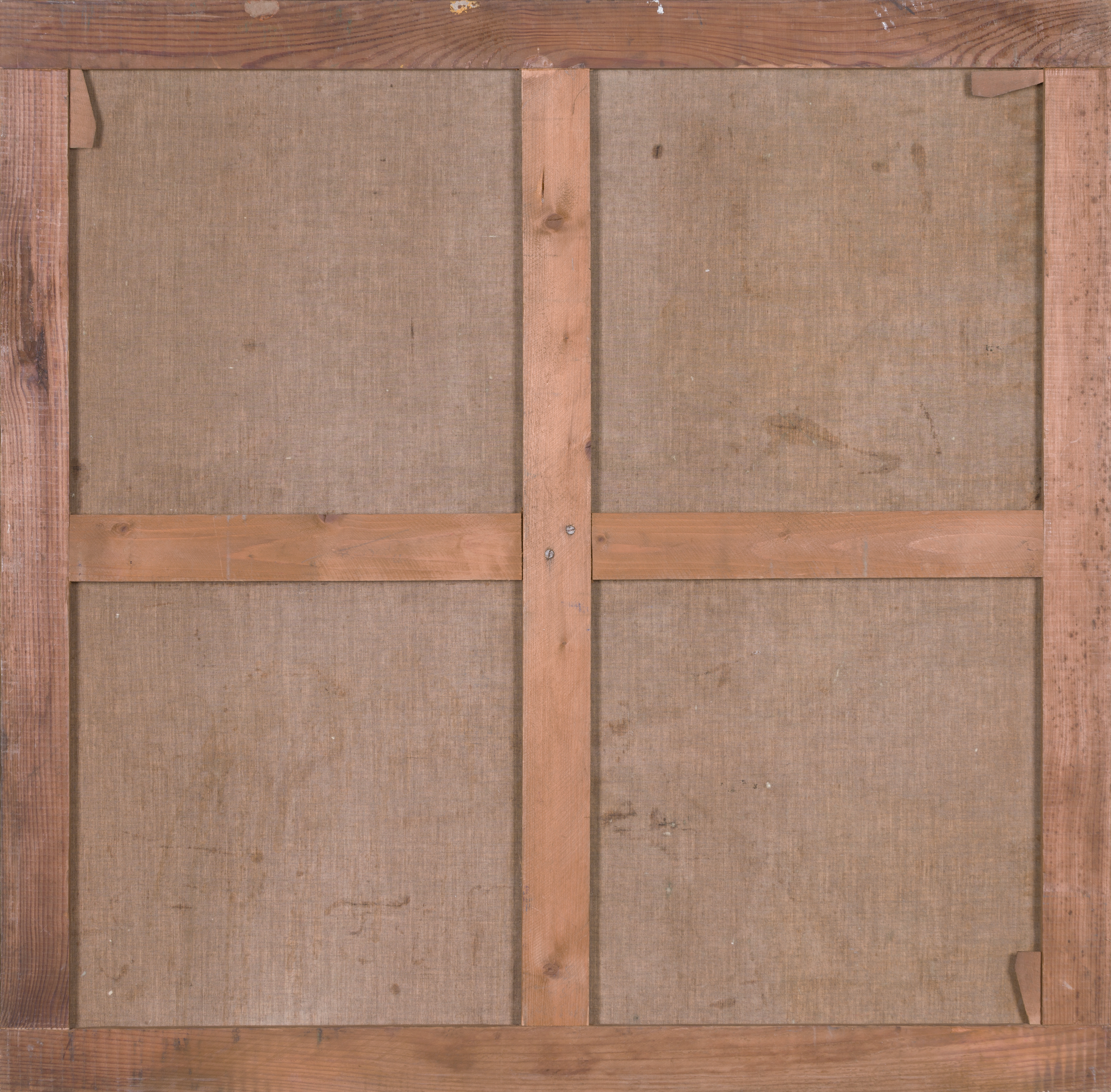 Good vintage condition; the colors remain rich and the surface is stable with well-preserved textures. The work remains on what appears to be the original wooden stretcher, though the canvas has been restretched for improved tension and preservation. Minor surface dirt is present, consistent with age.