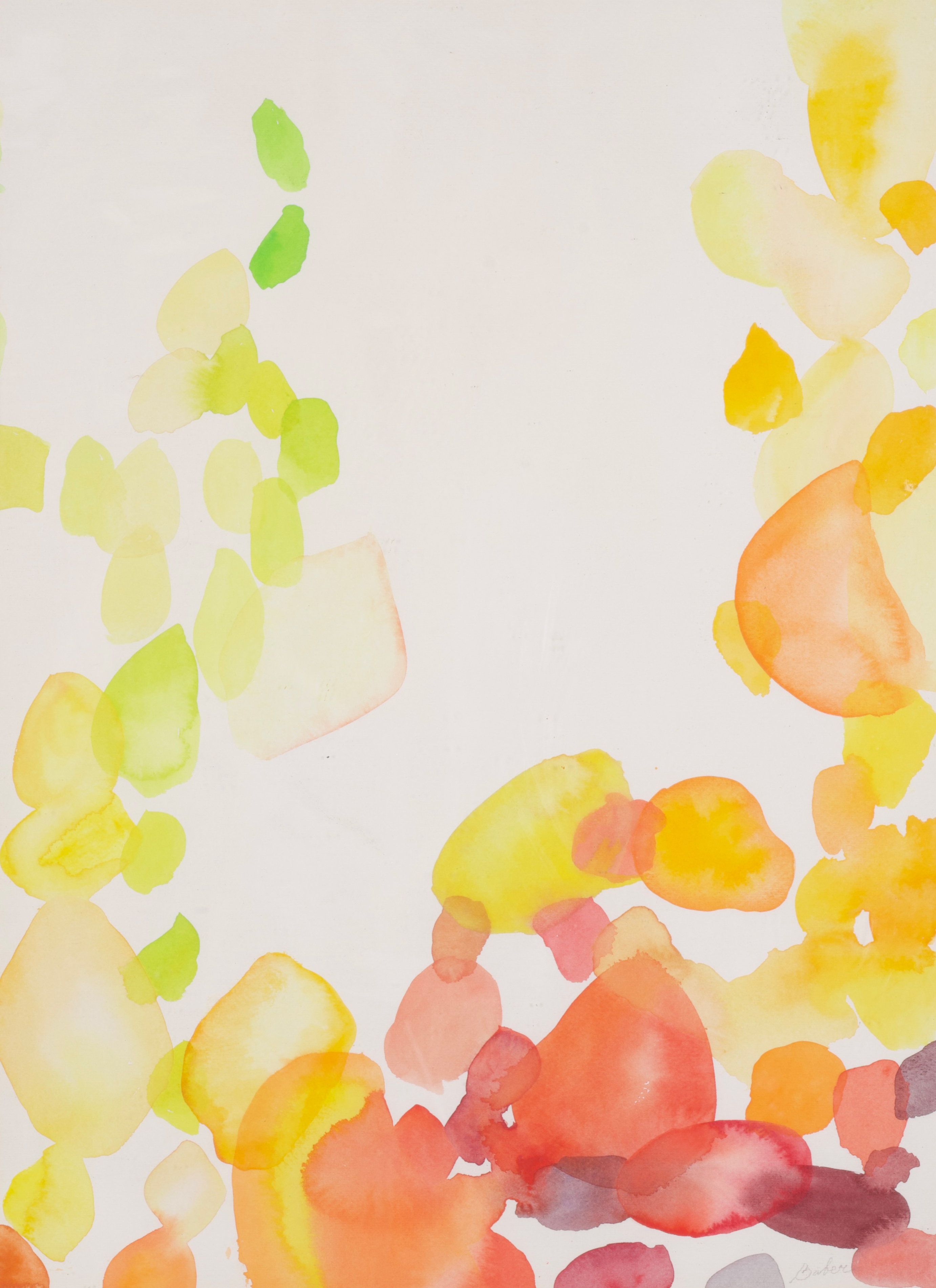 As a prominent figure in the Post-War American abstraction movement, Baber’s work in this piece demonstrates her mastery of the watercolor medium, where delicate washes of color evoke a poetic, celestial atmosphere. The ethereal quality of the overlapping forms highlights her unique ability to infuse abstract shapes with a rhythmic, pulsing vitality.