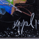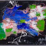 Executed in 1961, Paon Furieux (Furious Peacock) is a seminal mixed media work on carton that encapsulates the raw, primitive energy of Karel Appel’s mature style. The composition is a whirlwind of expressive power, featuring bold, impasto strokes of cobalt blue, emerald green, and crimson set against a dramatic black background. The titular peacock is rendered with the childlike spontaneity and “untrained” aesthetic that Appel pioneered as a founding member of the CoBrA movement.