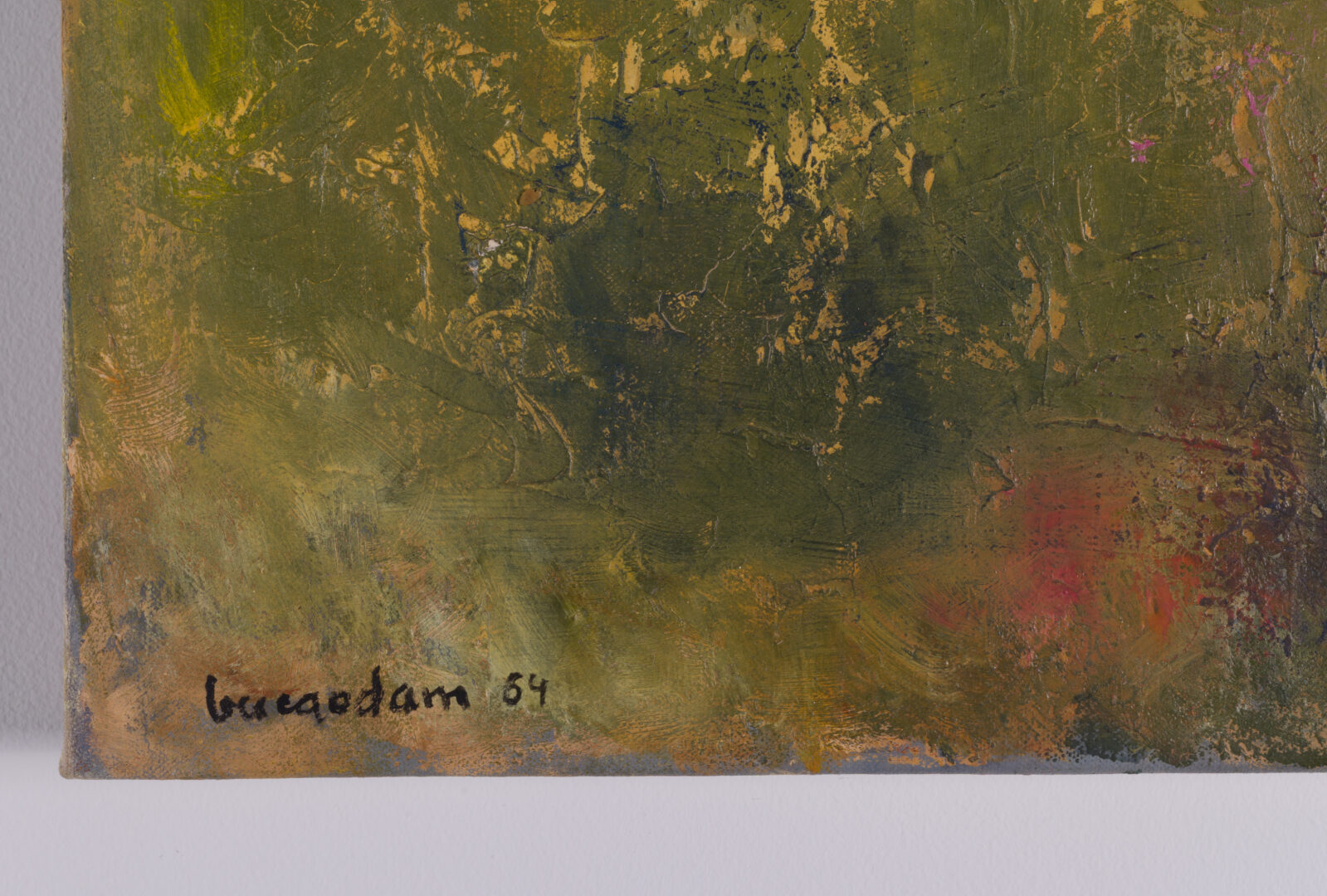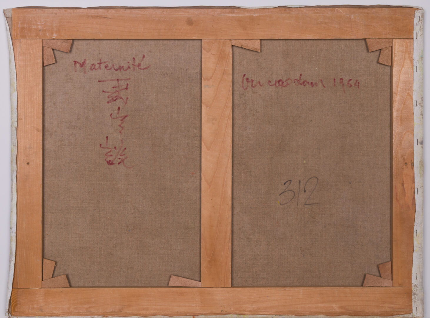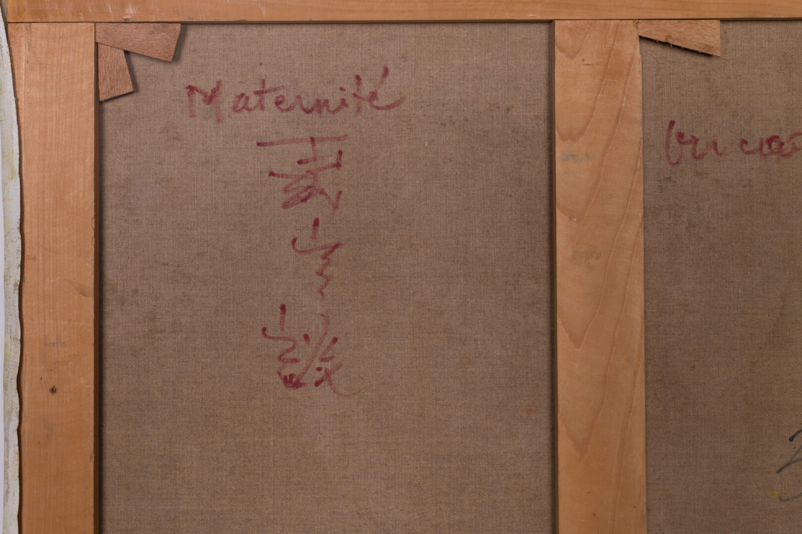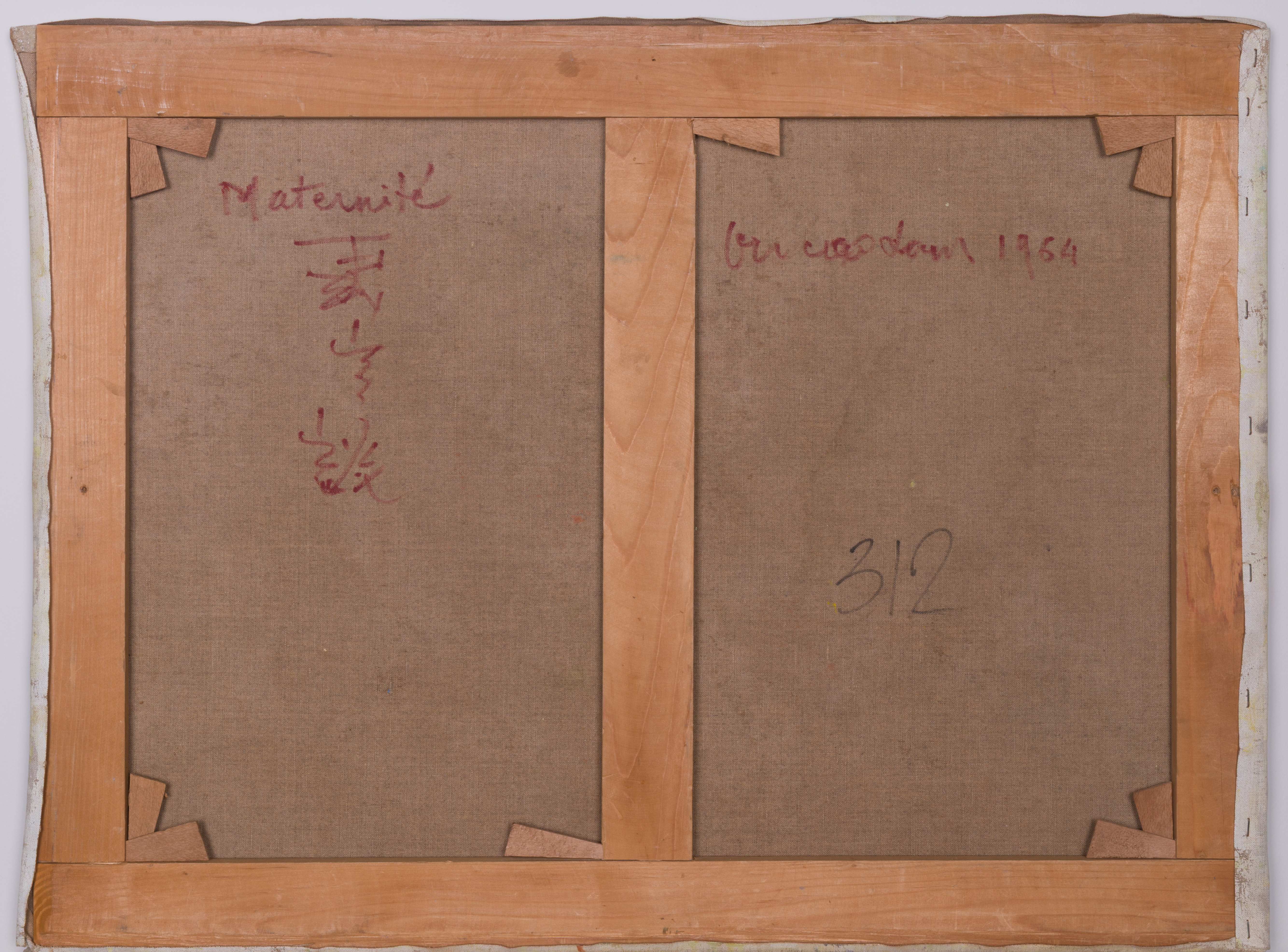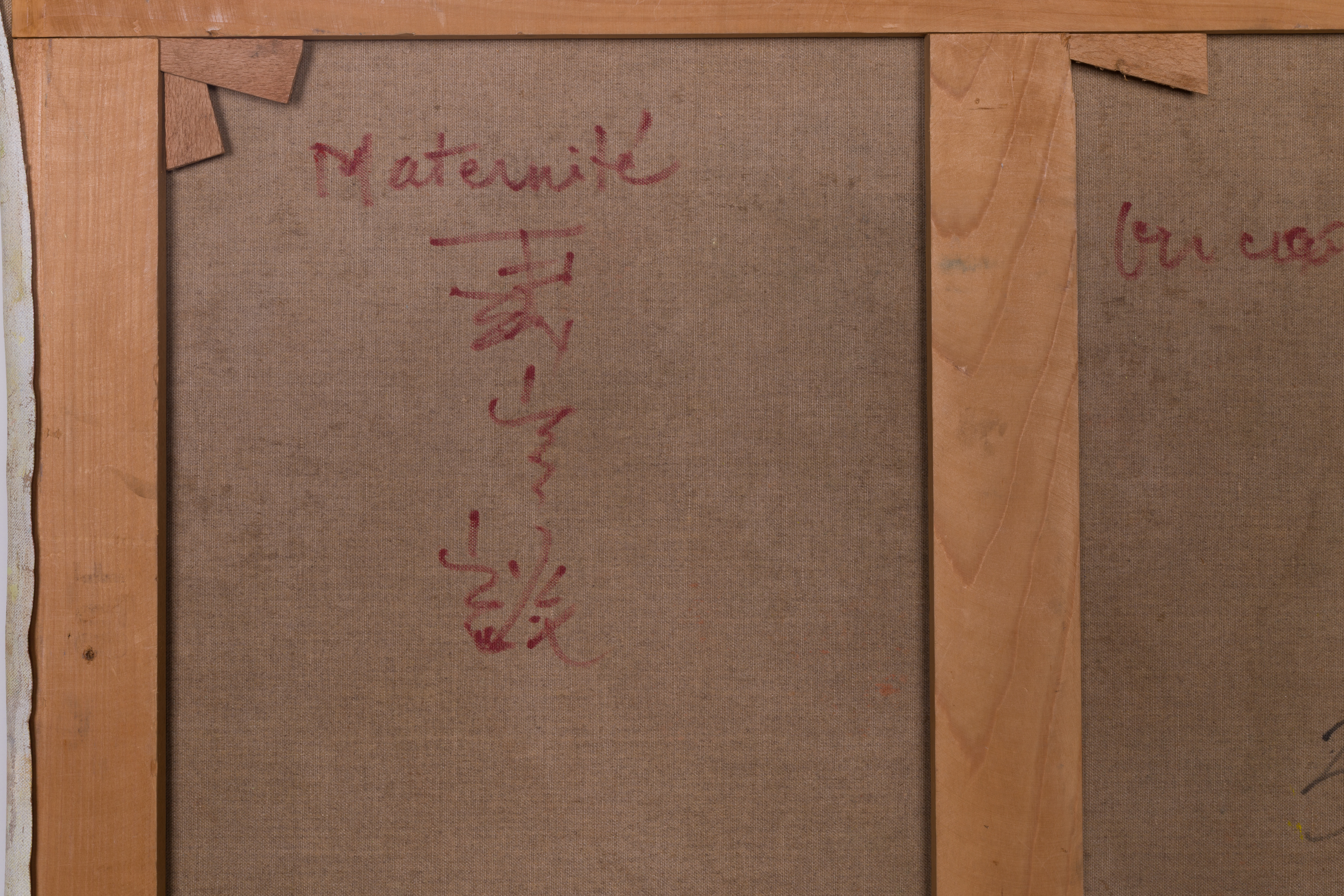 Verso Inscriptions: Hand-inscribed by the artist on the back of the canvas: “Maternité,” followed by Chinese characters, and “vu cao dam 1964”.