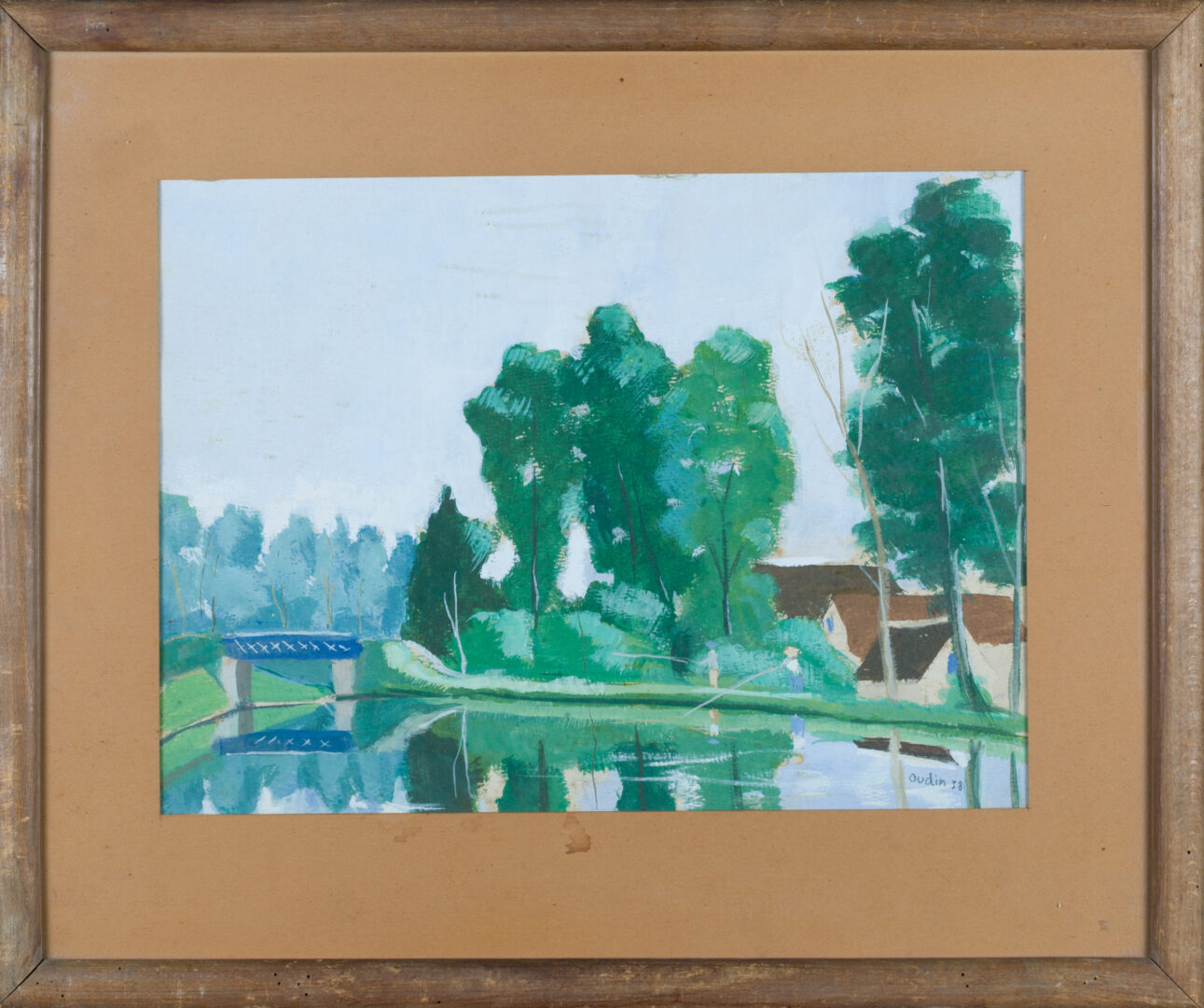28: 20th Century French School – Le canal au pont de Dordives, 1938