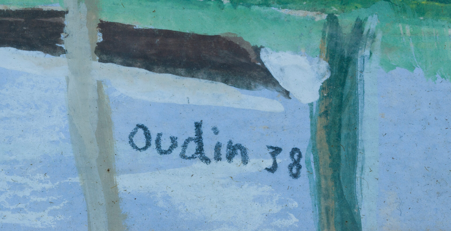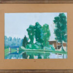 Le canal au pont de Dordives (1938) gouache on paper. The 20th Century French School is all about serenity. This quiet canal under a stone bridge, surrounded by trees and soft light is the essence of rural France.