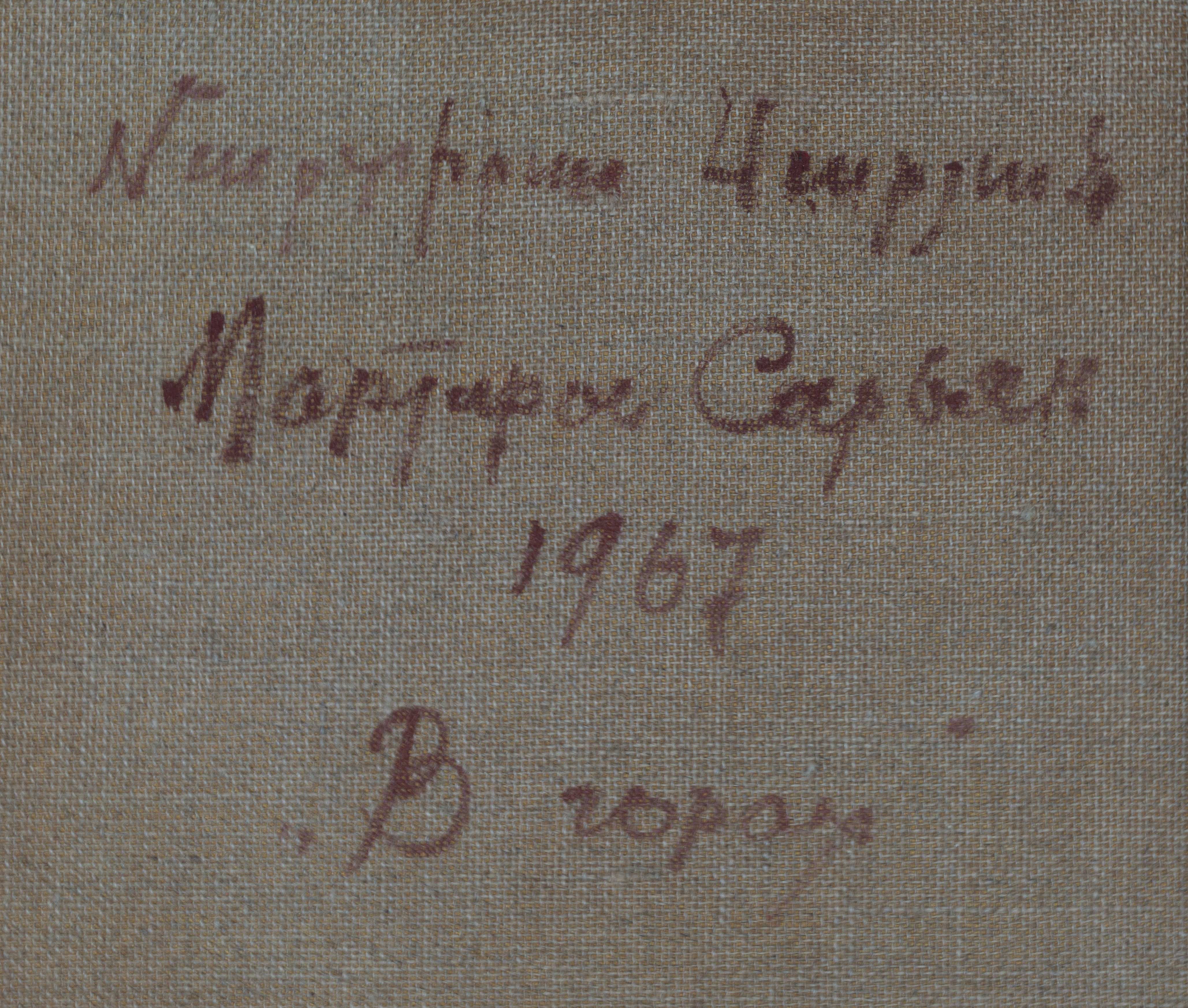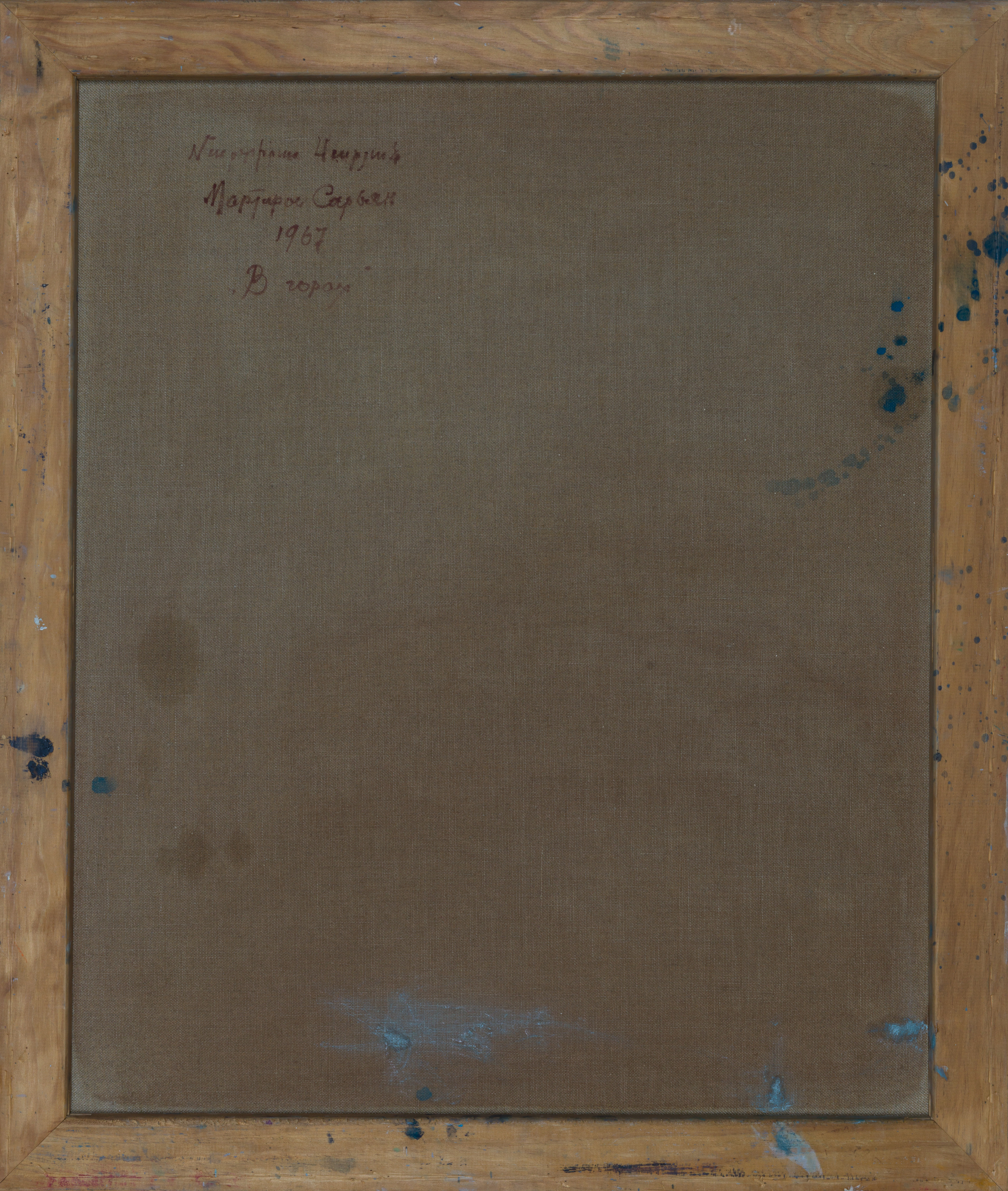 Signed lower left “М. Сарьян 1967”; inscribed on the verso “Мартирос Сарьян 1967 В горах” (Martiros Saryan 1967, In the Mountains).