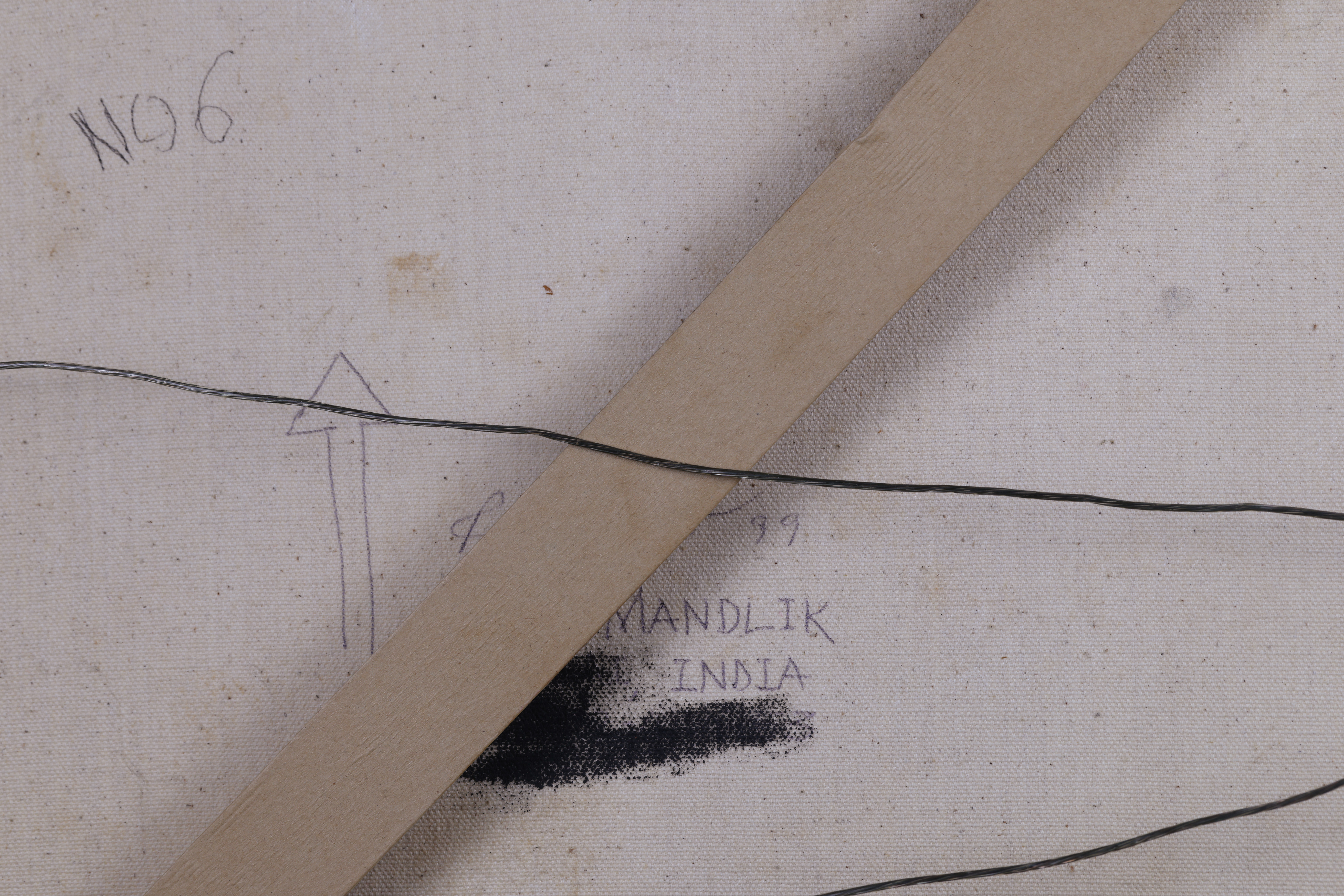 Signed lower right “Ravi Mandlik, 1999”; inscribed upper left verso “Ravi Mandlik – Composition No. 6, 1999”.